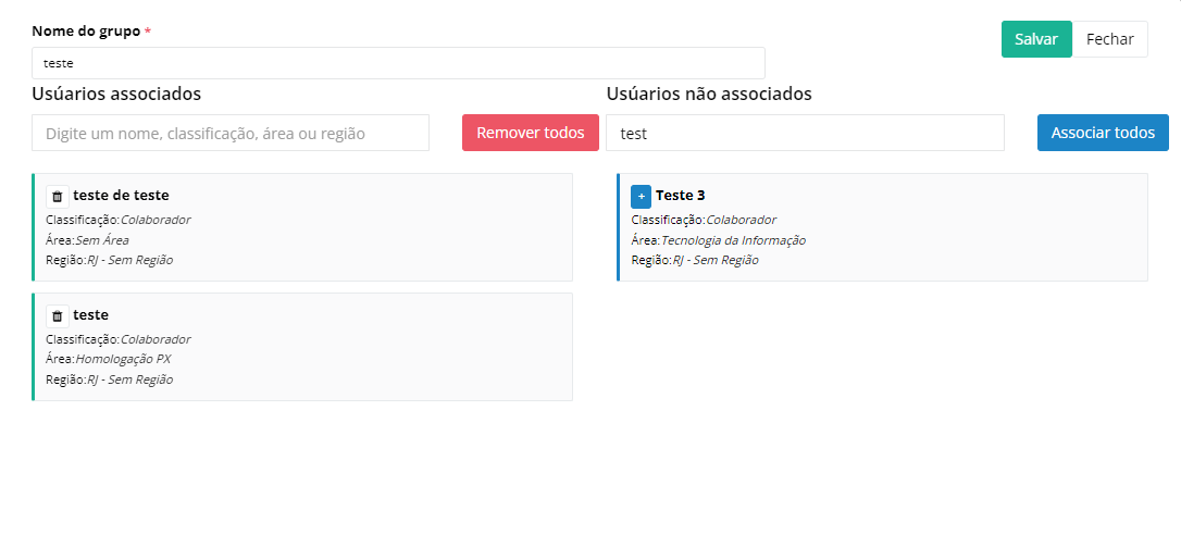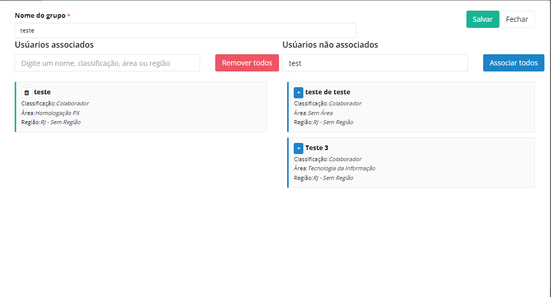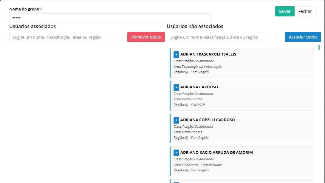Após a inclusão do colaborador, o nome dele passará para a lista dos nomes associados.