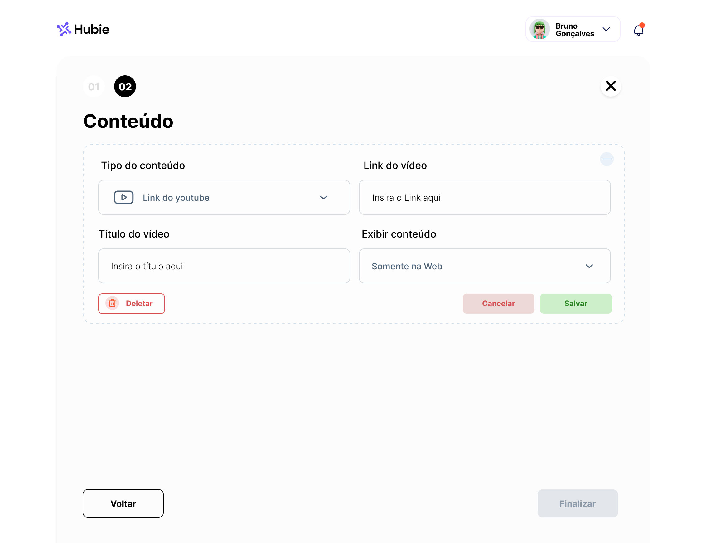 Todos os campos são obrigatórios. Escolha um dos tipos de conteúdos na caixa de seleção e preencha as informações solicitadas.